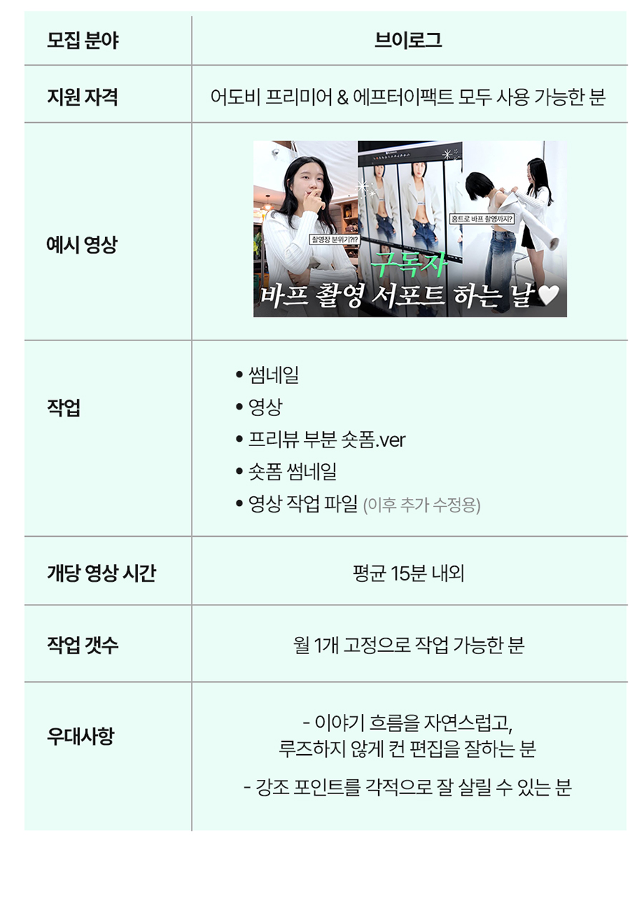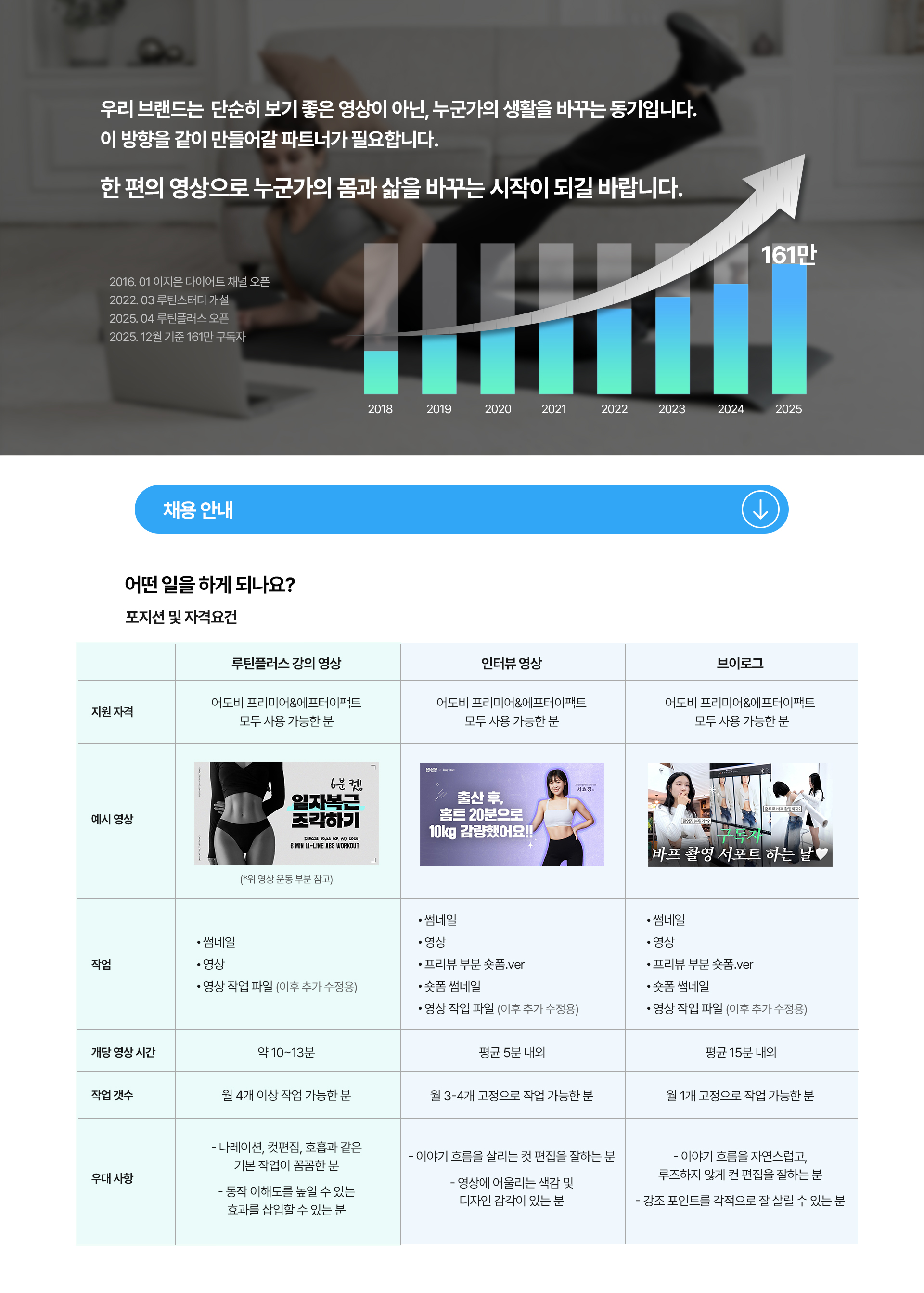 ▪️ 작업 브랜드 / 작업 영상 개수 / 협업 기간 (예시. 이지은다이어트 / 월 1개 / 2018.10 ~ 현재)