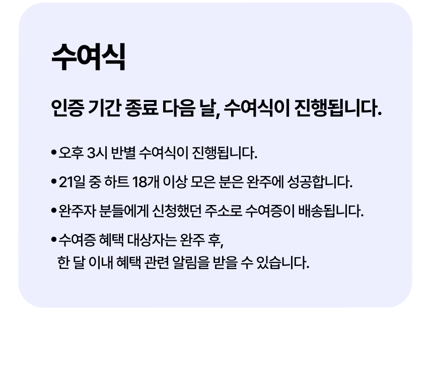 <3월반 일정> 3/5(목) 오후 4시 : 반배정톡 & 입장 3/9(월) - 3/29(일) : 루틴 인증 기간3/30(월) : 수여식