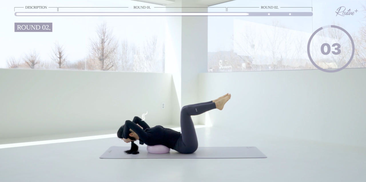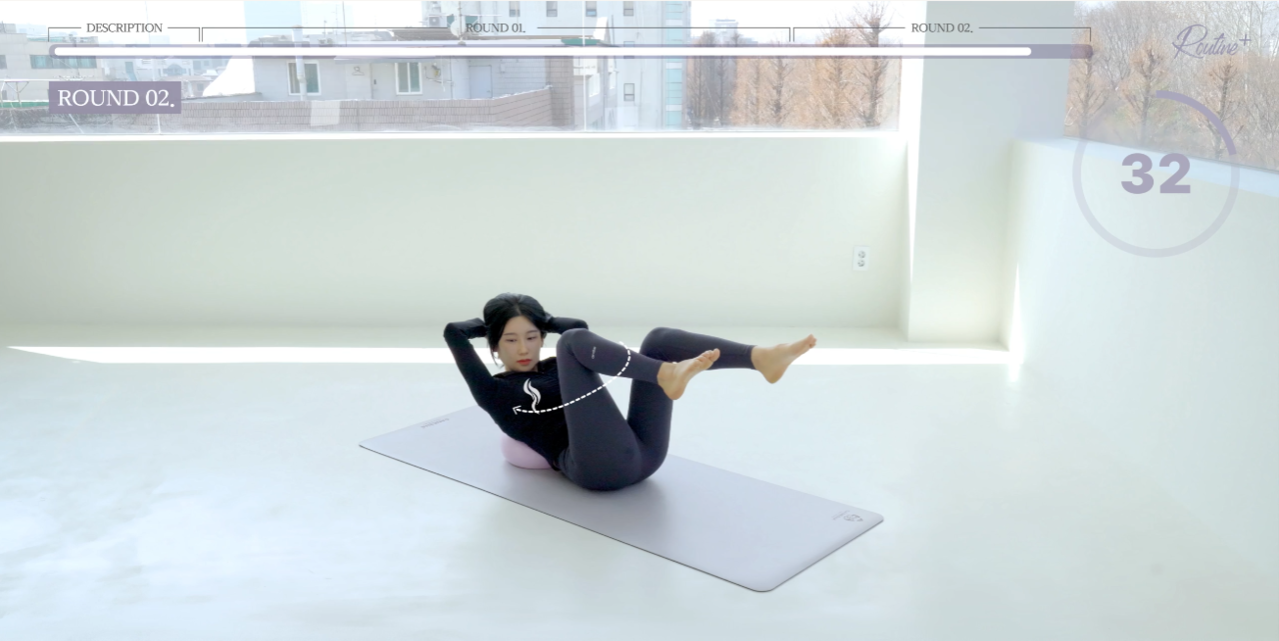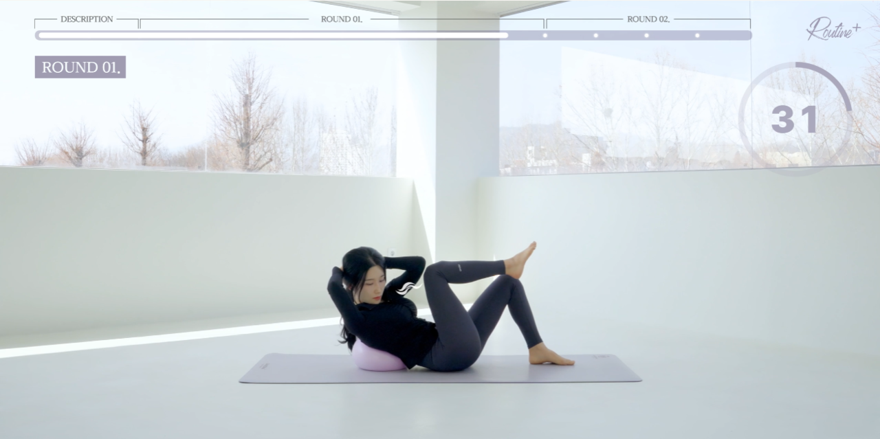 A. 이번 루틴은 복부 힘 중에서도 특히 위쪽 복부 힘으로 상체를 올려 복부에 강한 자극을 느낄 수 있습니다.
