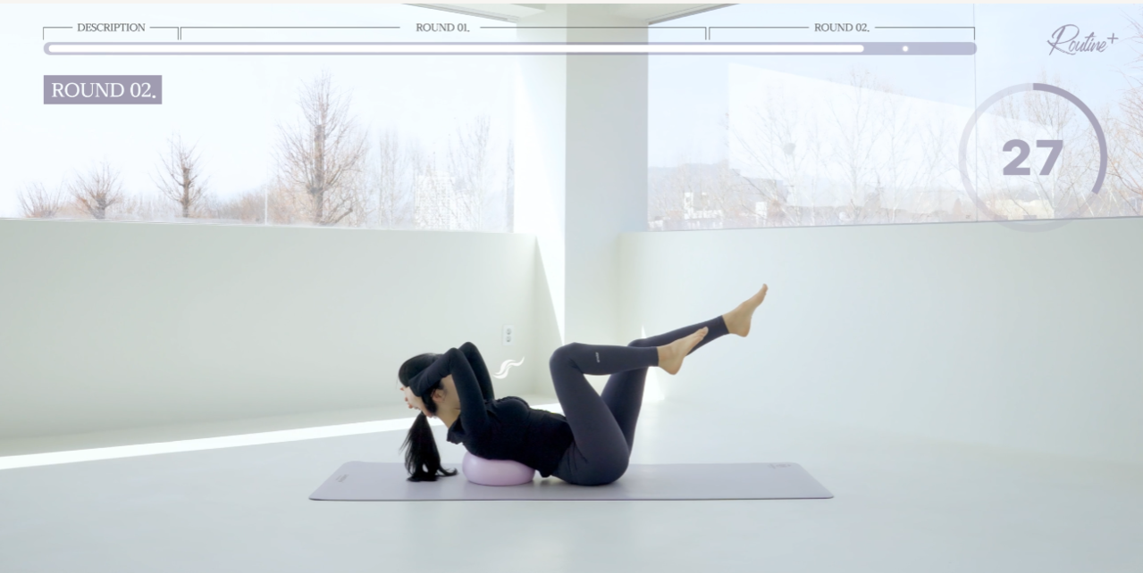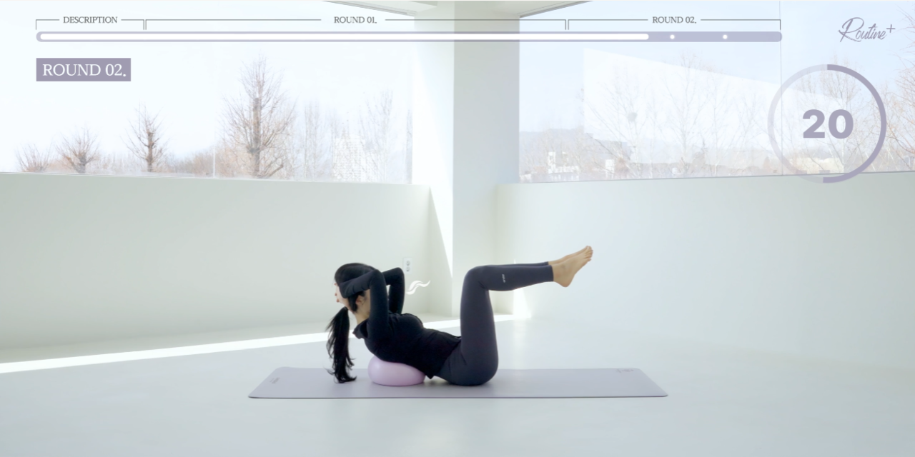 이번 루틴에서 허리가 불편하다면, 다리를 올렸을 때 다리 무게를 ‘복부’가 아닌 허리에 실어 허리가 과하게 긴장된 것이 가장 큰 원인입니다.